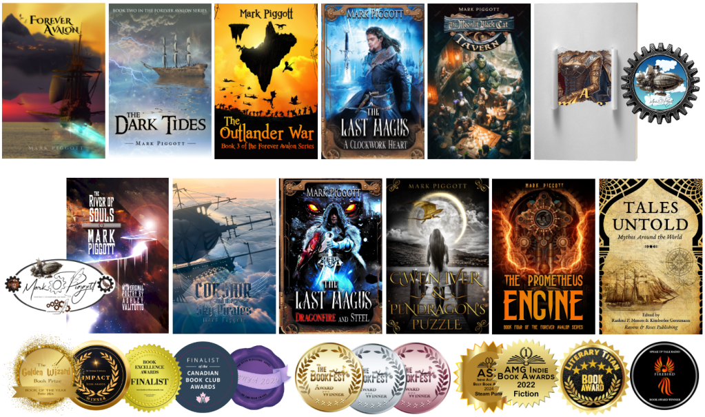 Mark Piggott is an award-winning independent author of several fantasy/steampunk novels and short stories. A 23-year U.S. Navy veteran, his stories will take you from the shores of eternal Avalon to a dystopian steampunk future and other worlds.